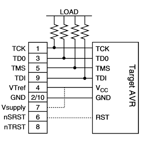 AVR JTAG is a complete set of the JTAG interface-based on-chip debugging tools for Atmel’s AVR Studio + iccavr, or WINAVR, support all AVR 8-bit RISC instruction with a JTAG port microprocessor. JTAG interface is a 4-wire test access port (TAP) controller that comply with the IEEE 1149.1 standard. IEEE standards to provide an effective test of the circuit board connection standard methods (boundary scan).